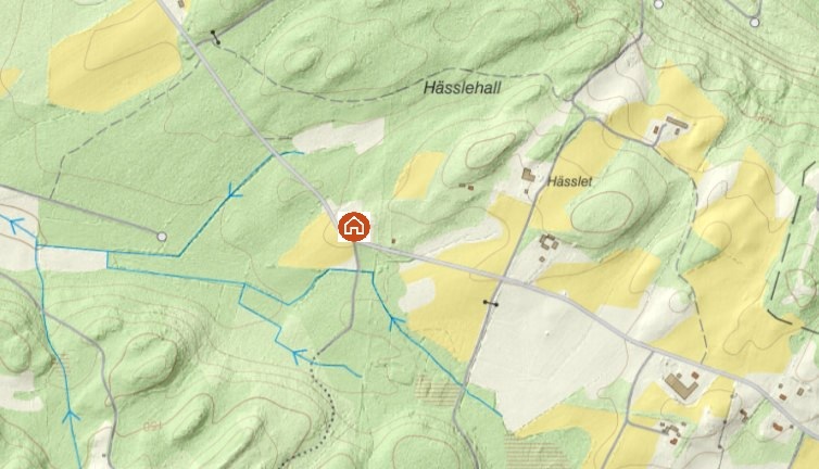 Adress: Fladalt 218, Våxtorp; halvvägs längs vägen mellan vägskälet vid Fladalts huvudgårdar och Kungsbyggets äventyrsanläggning på Hallandsås norrsida.