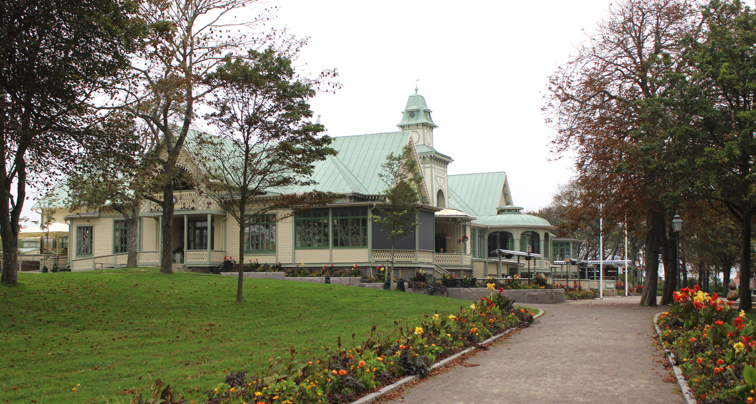 Stående framför den praktfulla byggnaden kastas man verkligen in i en tidsresa till svunna dagar. Till intrycket hör också parken som famnar den, åsynen av Varmbadhuset i söder (varför är detta nationalromantiska och 1920-talsklassisistiska monument inte ett byggnadsminne det också?), Tullhuset i norr, Kallbadhuset som man skymtar lite till vänster... och så Varbergs fästning där högt upp på berget mot havet till.